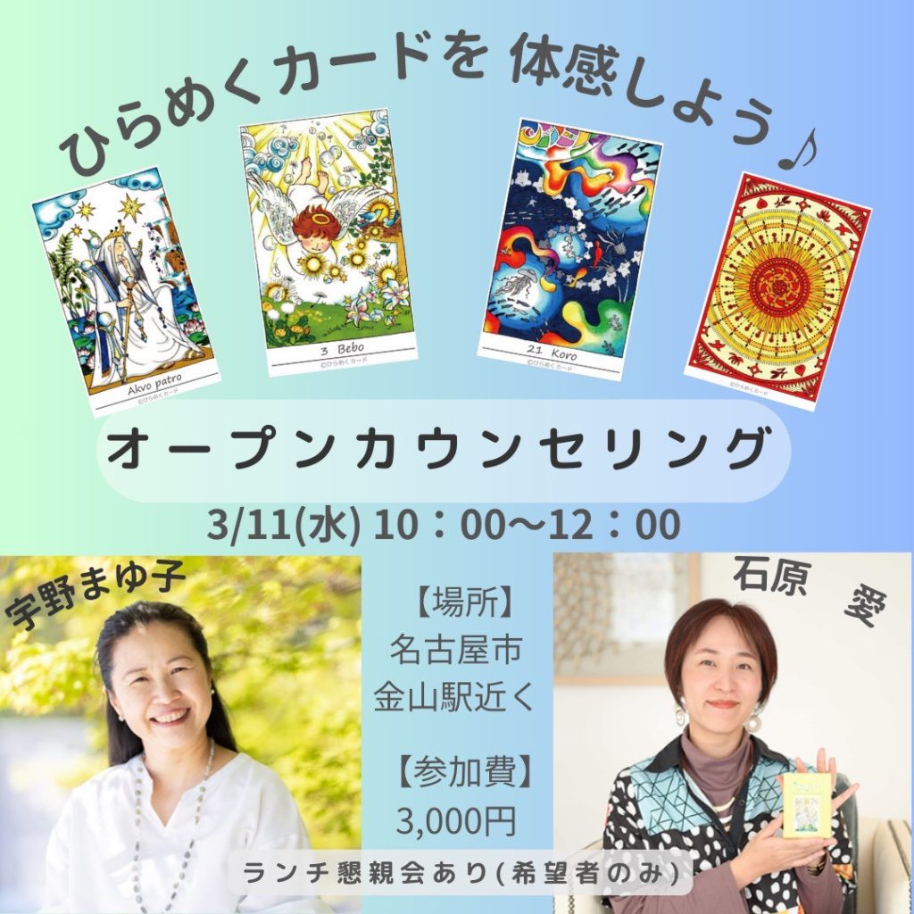 宇野まゆ子×石原愛コラボ企画ひらめくカードを体感しようオープンカウンセリング@名古屋